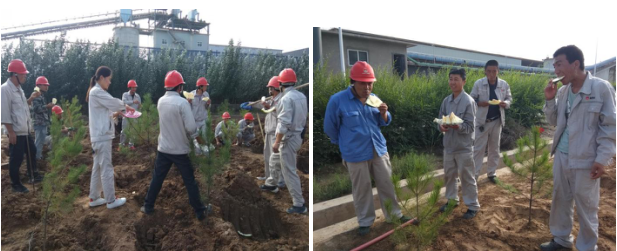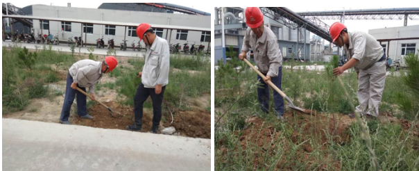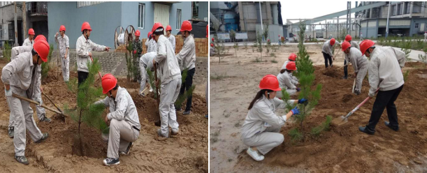 勞動過程中,領導處處帶頭,員工們熱情高漲,選樹苗、挖樹坑、填底土、種樹、澆水、修剪樹枝,干勁十足,整個廠區變得熱鬧起來。