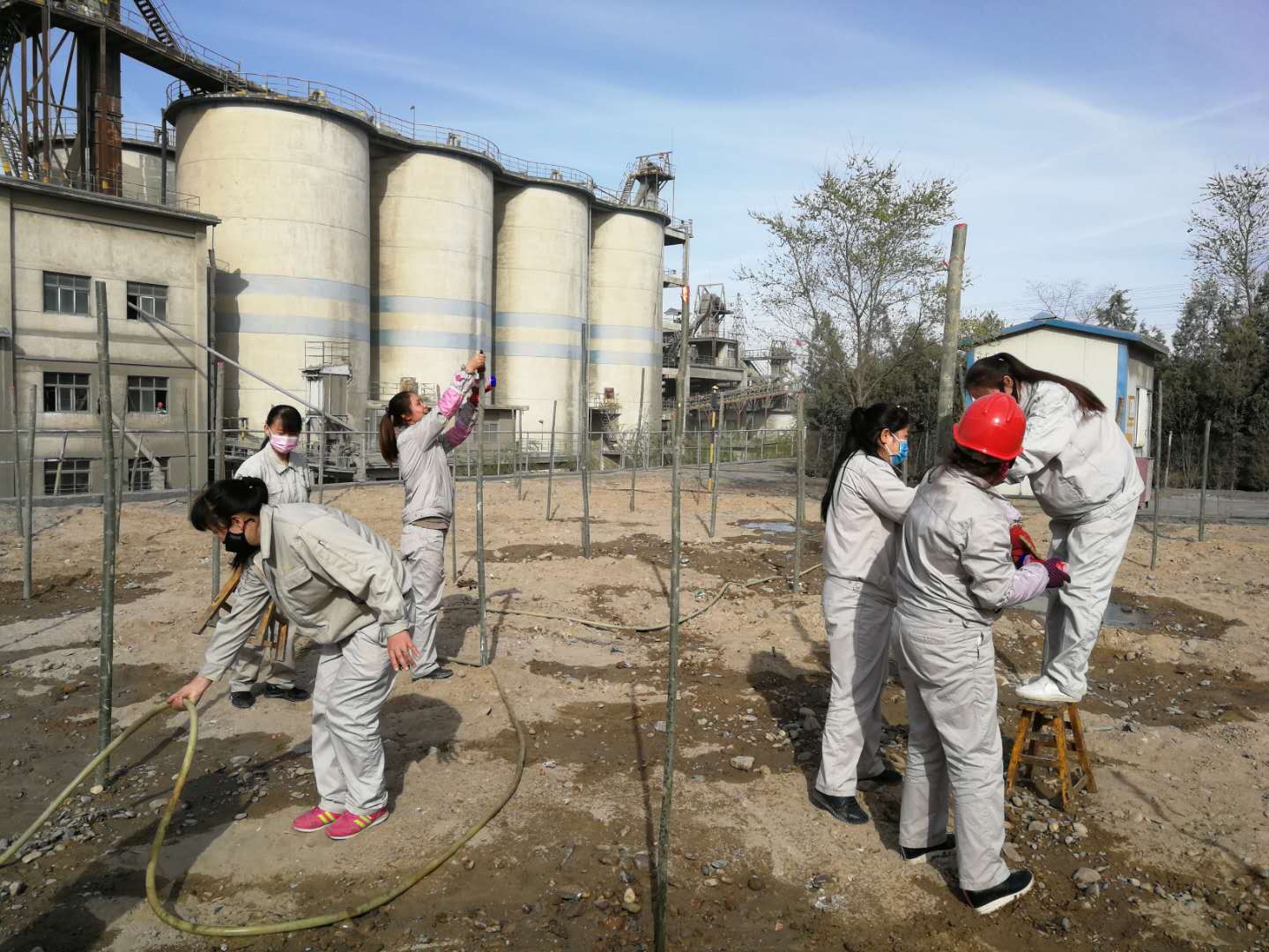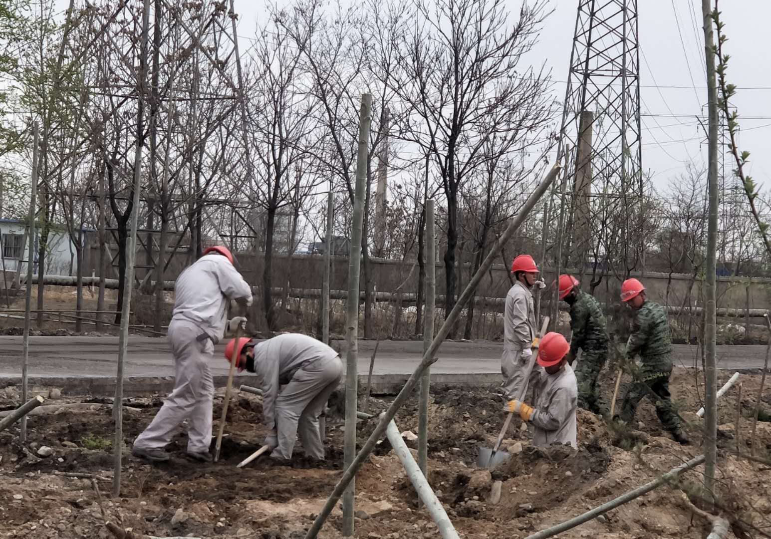 4月10日和11日,資源再生公司組織所有日勤人員栽種樹木。先后在東大路西側(cè),4#電石爐西側(cè),職工回民餐廳門口及成品裝置東邊等等地方栽種樹木上千棵。大家齊心協(xié)力,扶樹的、填土的,每個(gè)人都在努力的加快進(jìn)度,頭上冒出了汗珠,渾身酸痛,可大家仍然堅(jiān)持著,短短兩天時(shí)間就將所有計(jì)劃的樹木全部栽種完畢。