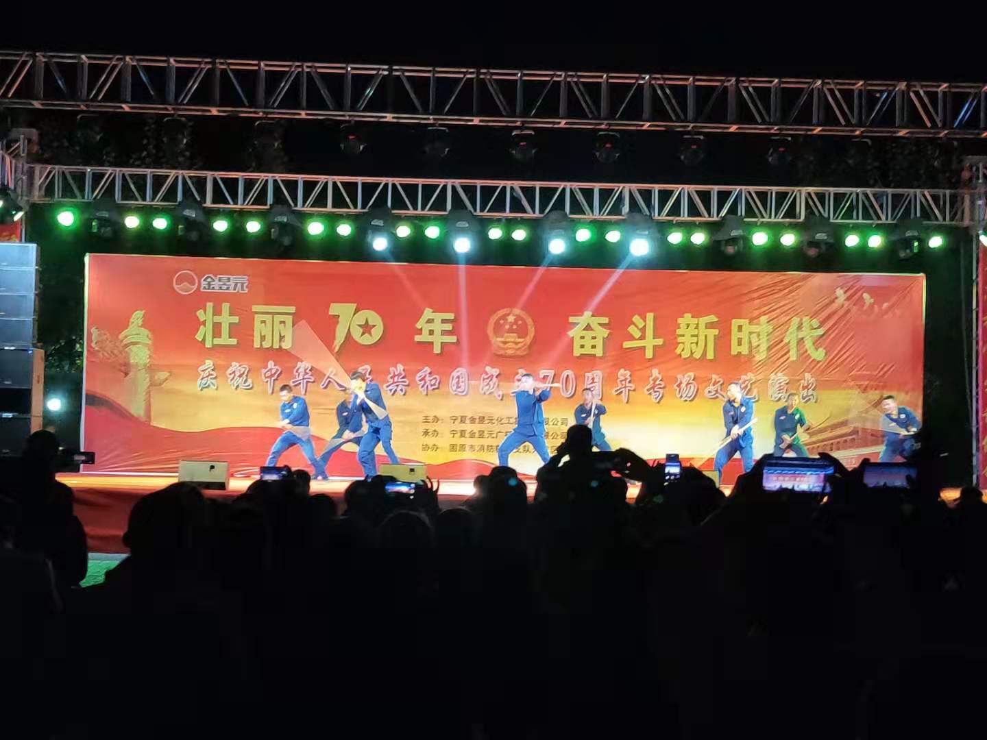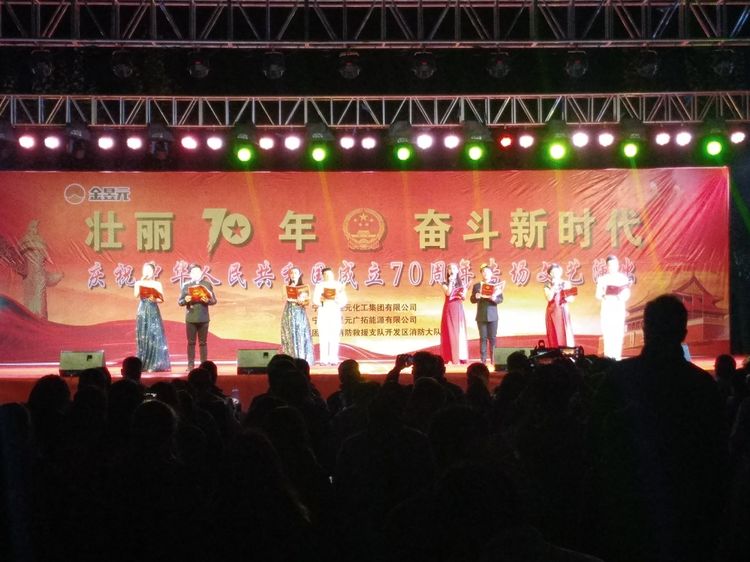 為慶祝新中國成立70周年,寧夏金昱元化工集團攜手固原市開發(fā)區(qū)消防大隊舉辦了以“壯麗70年,奮斗新時代”為主題的文藝匯演晚會,2019年9月26日晚,文藝匯演來到固原片區(qū),固原經(jīng)濟開發(fā)區(qū)管委會,固原市工信局,固原市消防救援支隊開發(fā)區(qū)消防大隊,集團公司、固原片區(qū)相關領導以及各子公司職工代表,外協(xié)單位共計400余人觀看了本次文藝匯演活動。