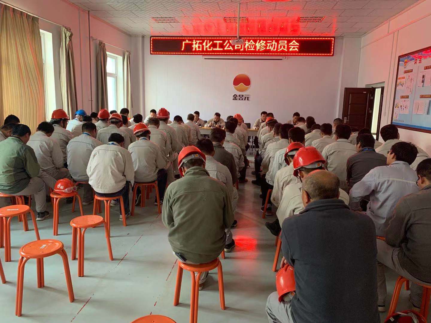 2019年10月22日至25日,廣拓化工公司為期四天的檢修已拉開序幕,21日下午公司組織召開技術(shù)員及以上管理人員檢修前的動(dòng)員大會(huì)。