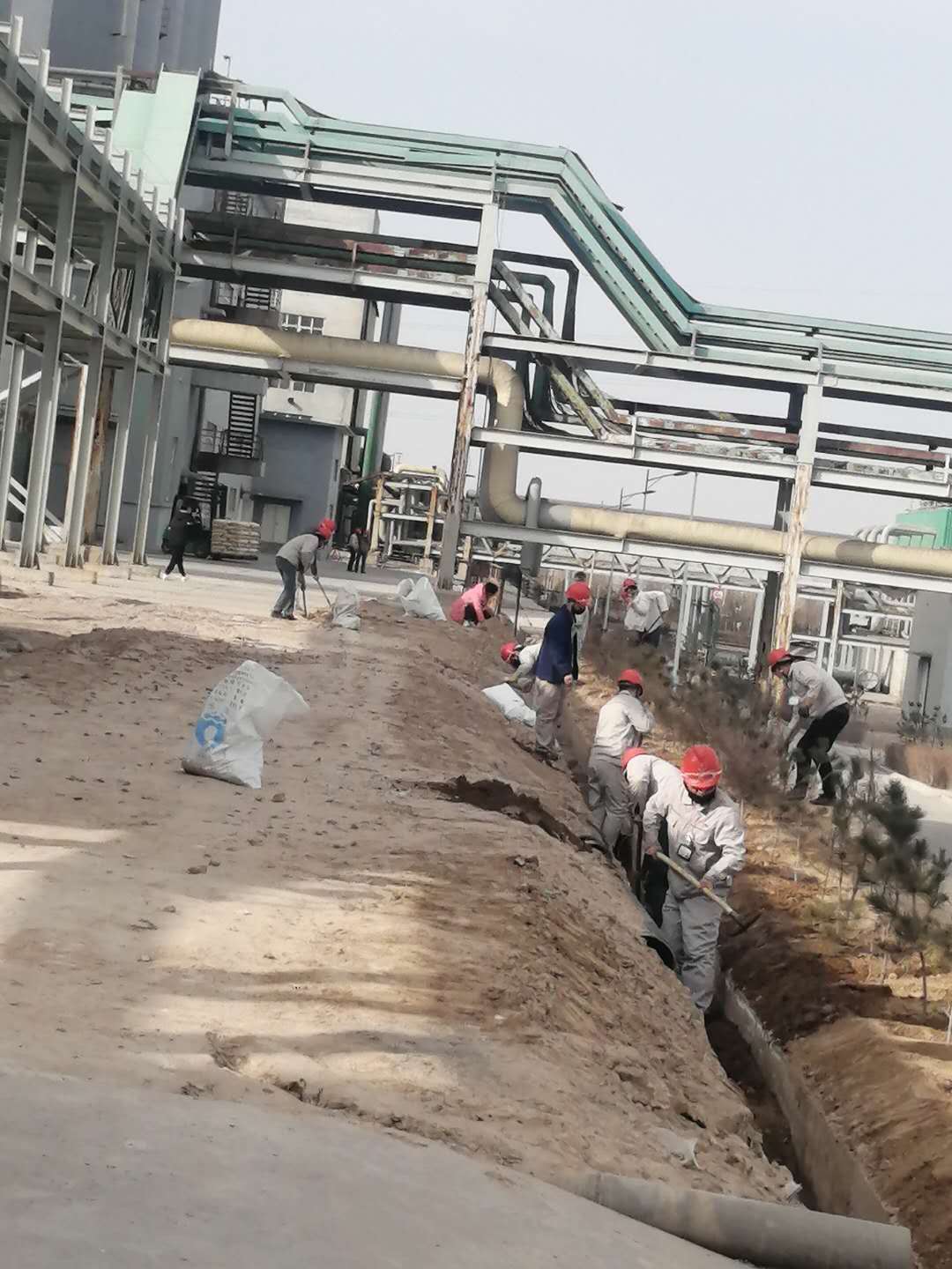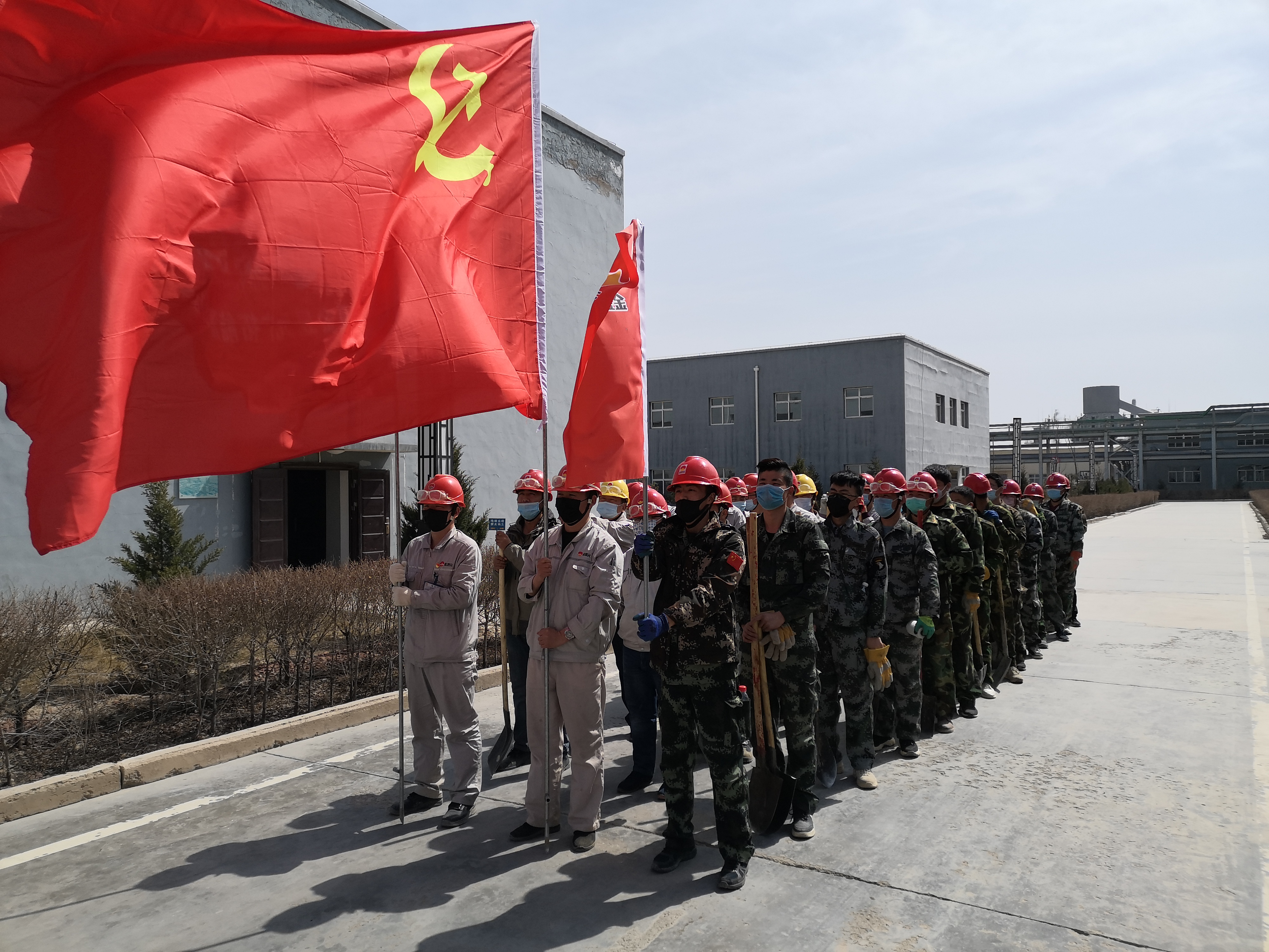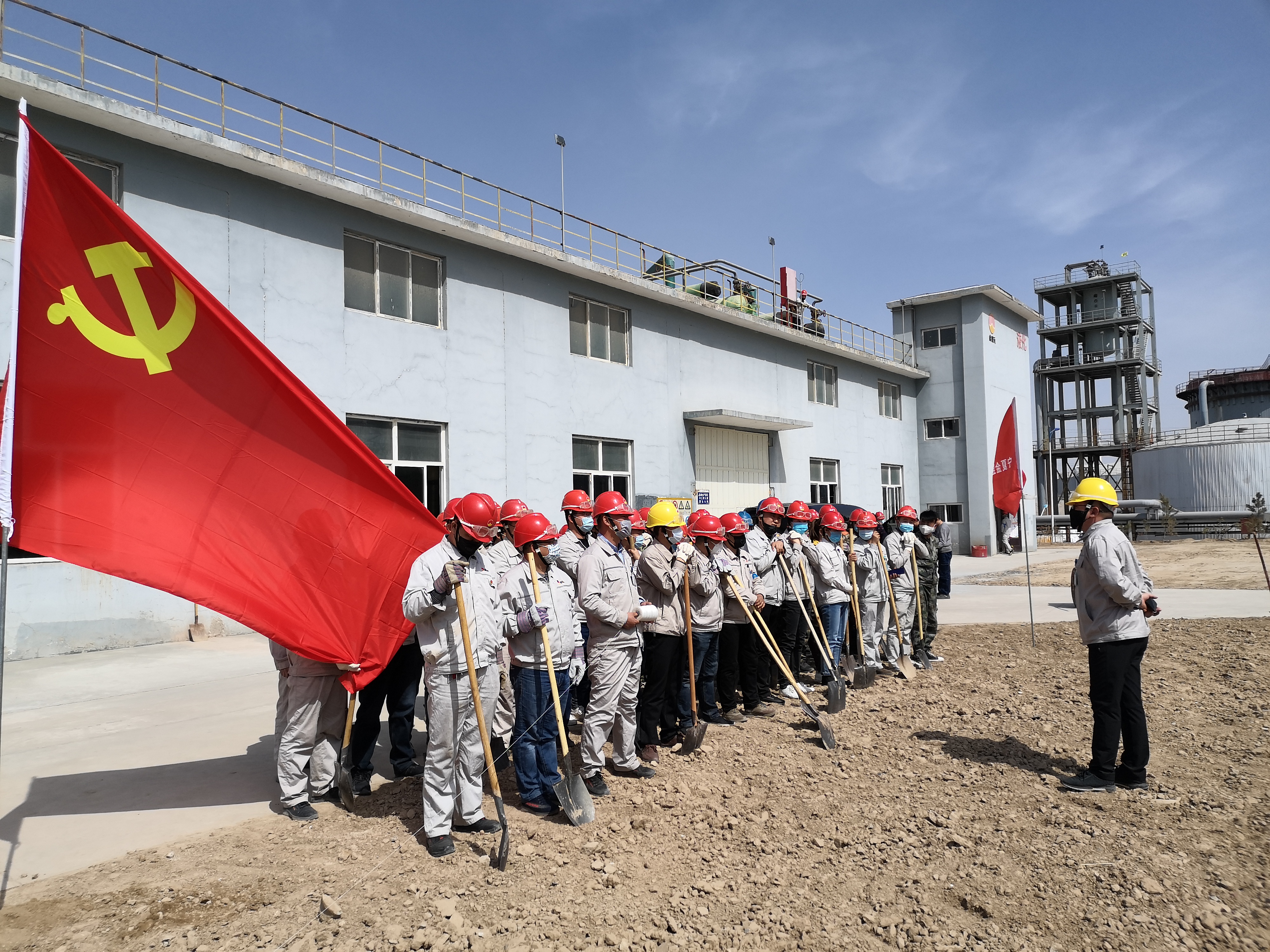 疫情防控下,黨員帶頭堅守一線不松懈;す军h支部書記賈存富帶頭奔赴綠化作業一線,組織各單位黨員對液化崗位土地進行平整,身體力行踐行“不忘初心,牢記使命”。