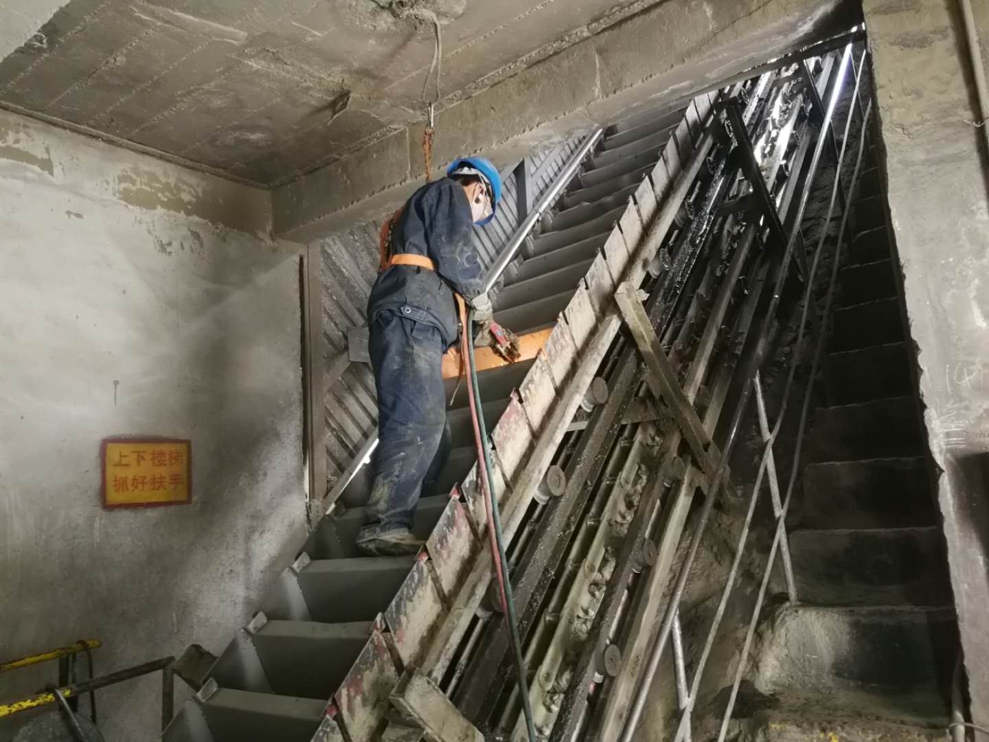 來到回轉(zhuǎn)窯檢修現(xiàn)場,熟料鏈斗機(jī)猶如一條巨龍矗立在45度斜廊上,維修工掛著安全帶對每個(gè)鏈斗詳細(xì)的進(jìn)行檢查,發(fā)現(xiàn)有松動(dòng)的馬上進(jìn)行維護(hù),確保檢修后鏈斗機(jī)能安全穩(wěn)定的運(yùn)行。