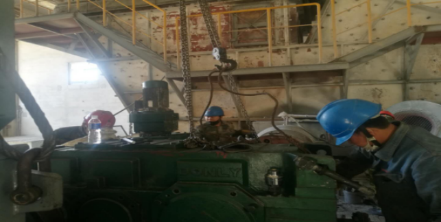 (4)烘干破減速機齒輪及軸承檢查,更換油封,聯軸器找正(未完成);