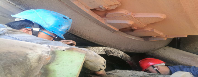 3)回轉(zhuǎn)窯輪帶擋圈及墊板補焊加固,檢查大齒圈齒面磨損并對齒面打磨修復(fù)(完成);