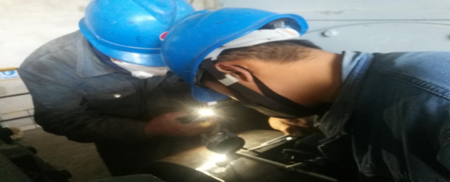 在檢修期間,他們充分發(fā)揚了嚴謹認真,精益求精的工作作風(fēng),為了徹底解決設(shè)備存在的癥結(jié),他們擠進狹小的空間,補焊、切割。這樣你追我趕地干著。累了就稍作休息,渴了就喝口涼水。胳膊振酸了,手掌磨麻了,可工作的熱情卻仍高漲。在經(jīng)過全體努力,每一個設(shè)備逐漸恢復(fù)了暫新原貌。