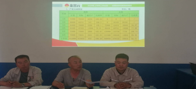 生料裝置、成品裝置、電儀裝置和質檢科依次做了總結報告,客觀認真全面的總結了本單位2020年上半年的主要工作和成績,對于工作中存在的不足進行了深刻的剖析,對于下半年工作進行了規劃和展望,同時對于公司發展積極提出自己的想法和建議。