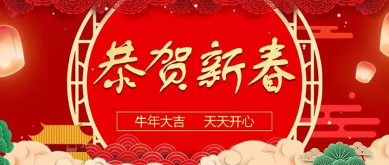 伴隨著渾厚的新年鐘聲,沐浴著冉冉升起的朝陽(yáng),金鼠辭舊歲,福牛迎春到。至此歲序更迭,辭舊迎新之際,我們通過(guò)“新媒體”平臺(tái)給大家拜年!祝大家在新的一年里身體健康、工作順利、生活美滿。牛年大吉!