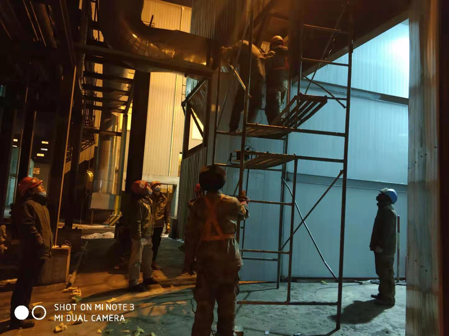 2021年1月8日,是固堿裝置檢修熔鹽爐及安裝脫硝設(shè)備的日子,一大早,檢修現(xiàn)場現(xiàn)場,就看見他們忙碌的身影。