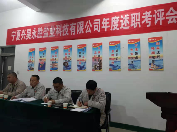 2021年12月2日下午,寧夏興昊永勝鹽業(yè)科技有限公司組織召開2021年度管理人員述職考評會,聽取管理人員履職情況、管理目標和重點工作完成情況、分管工作和本人履職中存在問題及下一年的工作思路。