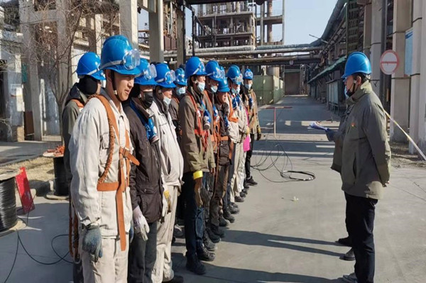 元旦過后,裝置領(lǐng)導(dǎo)開會安排放置光纖的任務(wù),各級人員迅速投入其中,每天臨近上午下班前,相關(guān)班組辦理好登高證、檢修作業(yè)證、作業(yè)方案及工作危害分析,把需要放置的光纖盤拉到指定位置擺放整齊,準(zhǔn)備好五樁一門和警戒帶,下午1點30分,所有作業(yè)人員系好安全帶,戴上防毒口罩、棉帽子到達現(xiàn)場,落實完各項安全措施,確認(rèn)具備條件,作業(yè)負(fù)責(zé)人現(xiàn)場進行安全技術(shù)交底,交底完畢后,大家有序地爬上橋架,下面的人有拉光纖的,做標(biāo)記的,往上送的,口哨一響,大家鼓勁使力、齊步向前,光纖一段一段整齊的放置于橋架內(nèi),在這幾天放置光纖的過程中,乙炔站和六萬噸離子膜光纜距離較長,好幾位年長的師傅并沒有因為年齡大而推脫,同樣是系好安全帶,穿戴齊全防護用品,早早地上到橋架上,找到合適的位置,安全帶系掛牢靠后,聽從指揮,保證了放置光纖的任務(wù)提早完成。