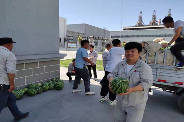 2022年7月集團公司工會主席來一線現場,為廣大一線職工送來新鮮采摘的西瓜。正是一天中氣溫最高的時候,烈日炙烤著大地,整個空氣熱氣騰騰。為堅守在一線的干部職工送來夏日的清涼。并詳細了解了職工的日常工作情況和高溫勞動防護措施情況,叮囑干部職工在一線及外出工作時做好防暑降溫措施,注意勞逸結合,保障自身的安全健康。這些防暑降溫用品雖然不貴重,但它表達了工會關心職工、體恤職工的濃濃情意,也在炎炎夏日為廣大干部職工帶來一絲愜意、一縷清涼。大家一致表示,會將這份關懷轉化為努力工作的動力,將鼓足精氣神,盡心盡力做好本職工作,為公司發展作出應有的貢獻。