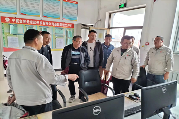 2022年8月25日上午,自治區綠色礦山建設考評驗收小組組長朱平,帶領綠色礦山建設考評驗收小組,在原州區自然資源局礦產科張主任的陪同下,蒞臨金昱元巖鹽開發公司開展綠色礦山建設第一次考評驗收工作。公司總經理尚繼榮、副經理莊濤及采鹵副總工程師溫艷廷等陪同檢查。