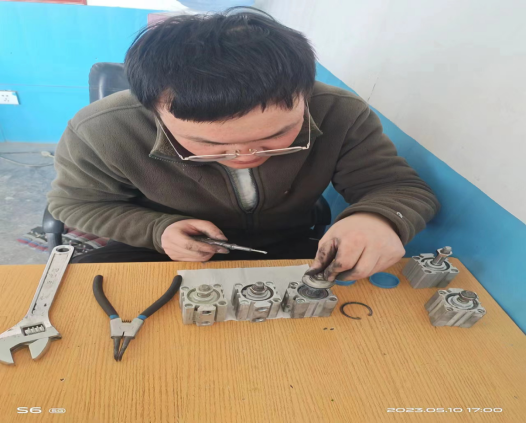就拿水泥包裝機(jī)的小氣缸來說,它的作用就是控制包裝嘴在完成水泥包裝以后能順利的將水泥袋從包裝嘴上掉落!它就是典型的易損件,因?yàn)樵谒喟b現(xiàn)場(chǎng),有一部分的灰塵是收塵器收不掉的,而包裝機(jī)屬于經(jīng)常運(yùn)轉(zhuǎn)設(shè)備,時(shí)間久了,小氣缸由于暴露在灰塵中,會(huì)有一部分灰塵通過電磁閥連接的氣道而進(jìn)入小氣缸內(nèi)部,造成內(nèi)部活動(dòng)件的卡死,如果活動(dòng)件卡死不動(dòng)作,小氣缸就會(huì)壞掉,因此需要我們經(jīng)常維護(hù)保養(yǎng)和更換!近期,班組人員積極響應(yīng)公司的廢舊利用理念,將一些不好用和損壞的小氣缸收集一起,進(jìn)行拆卸清理,重新再組裝,經(jīng)過反復(fù)的試驗(yàn),變成小氣缸的備件,這樣的一個(gè)小小舉動(dòng),其實(shí)為公司節(jié)約了一小部分成本,如果長(zhǎng)期這樣,大家一塊行動(dòng)起來,每年為公司節(jié)約的成本是顯著的,也是讓人內(nèi)心激動(dòng)的。