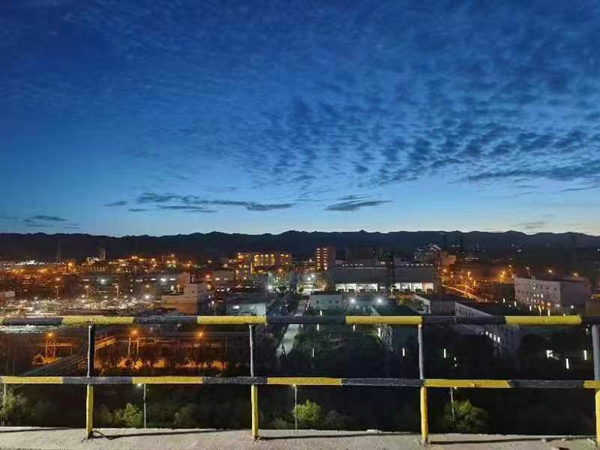 隔著廠房的燈火,