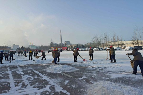 在除雪過程中,領導們始終與員工們并肩作戰(zhàn),他們不僅是指揮者,更是參與者。當遇到積雪結(jié)冰難以清理時,領導們與員工們共同商議對策,現(xiàn)場調(diào)配資源。他們親自上陣,與員工們一起喊著口號,齊心協(xié)力將積雪堆攻克。