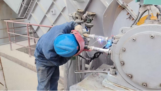隨著一聲清脆的哨響,檢修工作正式拉開帷幕。焊工老李戴著防護面罩,手持焊槍,在水泥磨的縫隙間穿梭。弧光閃爍,焊花飛濺,如同一朵朵金色的煙花在黑暗中綻放,他全神貫注地修補著磨體上的裂痕,每一個焊點都凝結著他的精湛技藝;鉗工師傅們則圍著球磨機,像一群經驗豐富的“外科醫生”,小心翼翼地拆卸下磨損的部件。扳手與螺栓碰撞發出的叮當聲,與拆卸設備時的摩擦聲交織在一起,奏響了一曲獨特的工業樂章。
