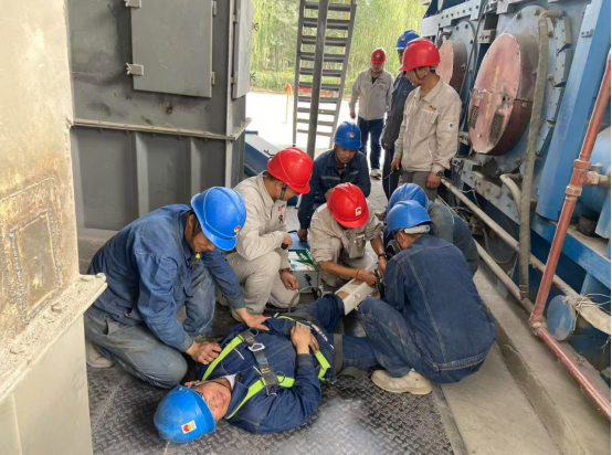 結(jié)合各生產(chǎn)崗位實際,化整為零組織開展了“高處墜落”“預熱器物料灼燙”“高壓開關柜著火”“鹽酸灼燙”“夏季高溫中暑”事故應急救援演練,通過模擬實戰(zhàn)場景,提升全員快速反應能力,強化應急處置水平。