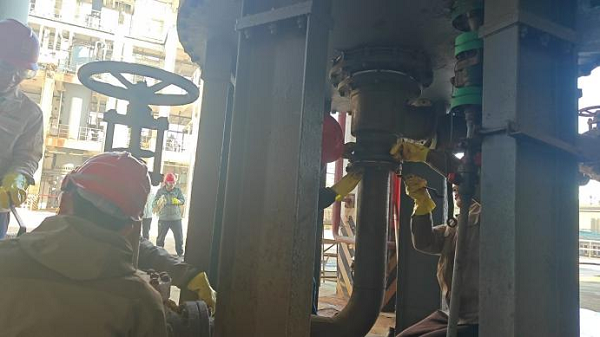 本次檢修任務繁重,但檢修人員卻干勁十足。他們有的拆卸螺栓,有的進行吊裝,有的開展焊接……他們配合默契,動作精準,工作井然有序。他們以勇于擔當的責任感和時不我待的使命感攻克難關,用實際行動勾勒出了一幅幅彰顯勞動之美的畫卷。