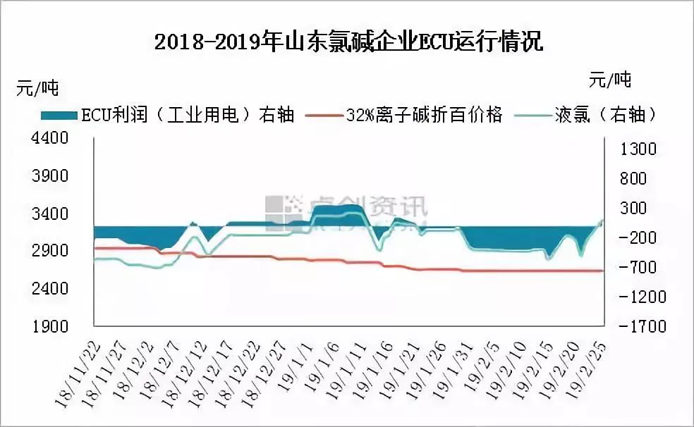 進入2月份,山東地區液堿市場價格表現平淡,高度液堿價格出現下調,低度液堿價格窄幅整理,各家根據自身情況靈活調整,近期液氯市場價格出現“轉正”,氯堿企業整體盈利情況如何呢?