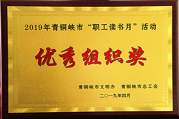 集團(tuán)公司工會(huì)取得優(yōu)異成績,榮獲2019年青銅峽市“職工讀書月”活動(dòng)優(yōu)秀組織獎(jiǎng)。