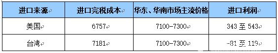 表1 進(jìn)口利潤核算(單位:元/噸)