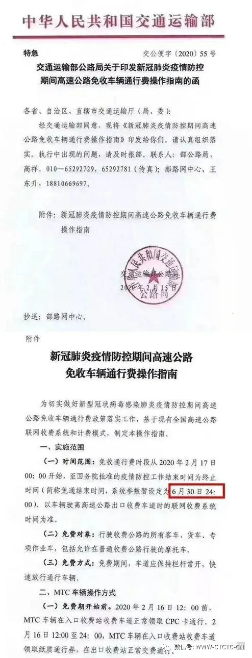 交通部門,根據疫情防控需要,經國務院同意,從2月17日0時起至疫情防控工作結束,所有依法通行收費公路的車輛免收通行費。