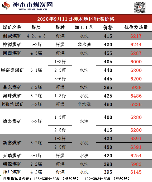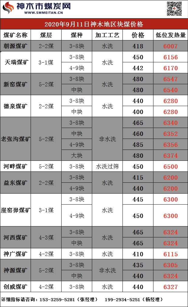 ◐榆林地區,受環保、安全檢查的影響,榆林地區的煤炭供應受限,礦區嚴查超載,煤廠嚴查煤票,持續檢查對運輸銷售沒影響,調運主要以化工和長途上站、企業剛需為主,礦區壓車情況明顯,對應區域內站臺調運積極,車輛到站卸煤需耗時排隊。◐狼窩渠煤礦:面煤價格上調5元/噸(執行410元/噸),中塊價格上調15元/噸(執行410元/噸),3-8塊價格上調10元/噸(執行425元/噸),籽煤價格上調10元/噸(執行435元/噸),3-1面煤價格上調15元/噸(執行300元/噸),3-1塊煤價格上調20元/噸(執行310元/噸)