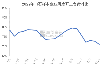 本周電石平均開工負(fù)荷繼續(xù)下降,截至本周四,電石行業(yè)周度平均開工負(fù)荷率在71.03%,環(huán)比上周下跌1.61個百分點(diǎn)。
