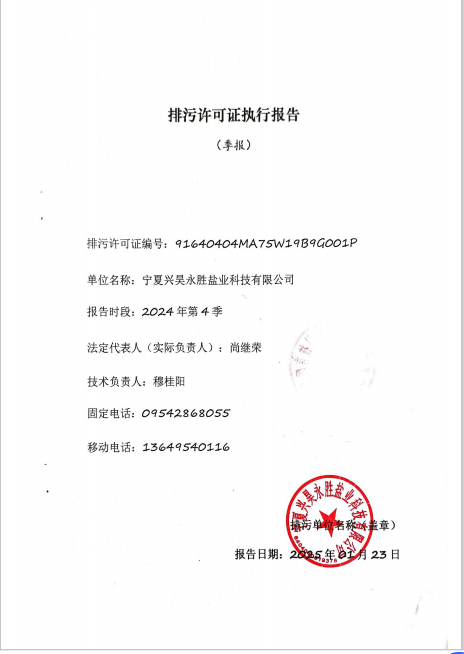寧夏興昊永勝鹽業(yè)科技有限公司2024年第4季度排污許可執(zhí)行報告