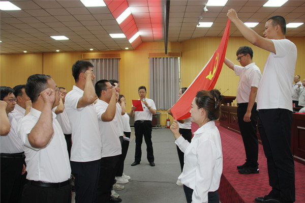 新黨員代表李愛軍作表態發言。他號召廣大黨員不忘初心,勇挑重擔、銳意進取,時刻為企業發展和國家建設貢獻智慧與力量。